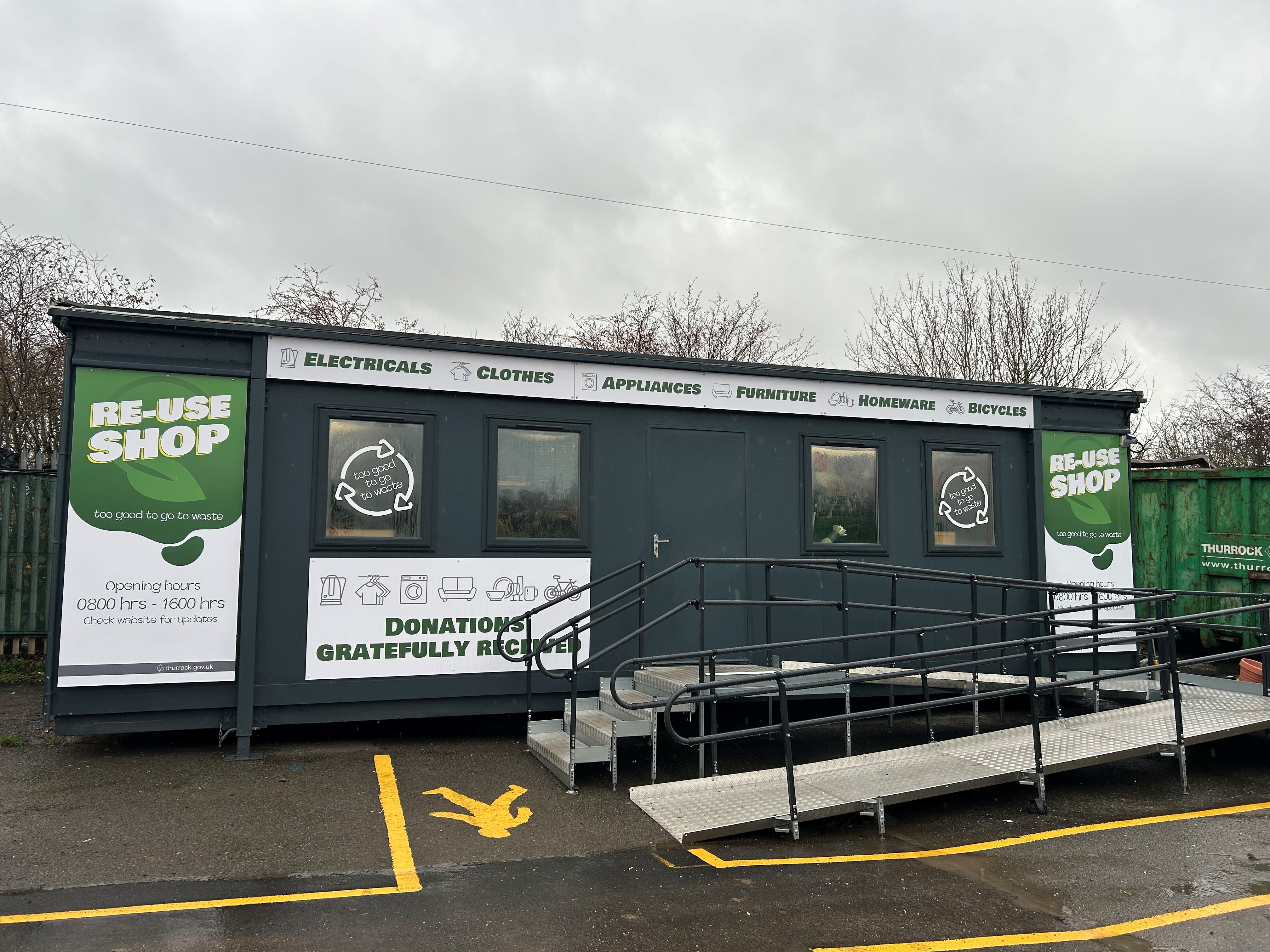 The reuse shop is located at our HWRC at Buckingham Hill Road, Linford, SS17 0PP. The shop is only safely accessible via vehicle.